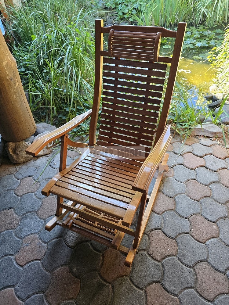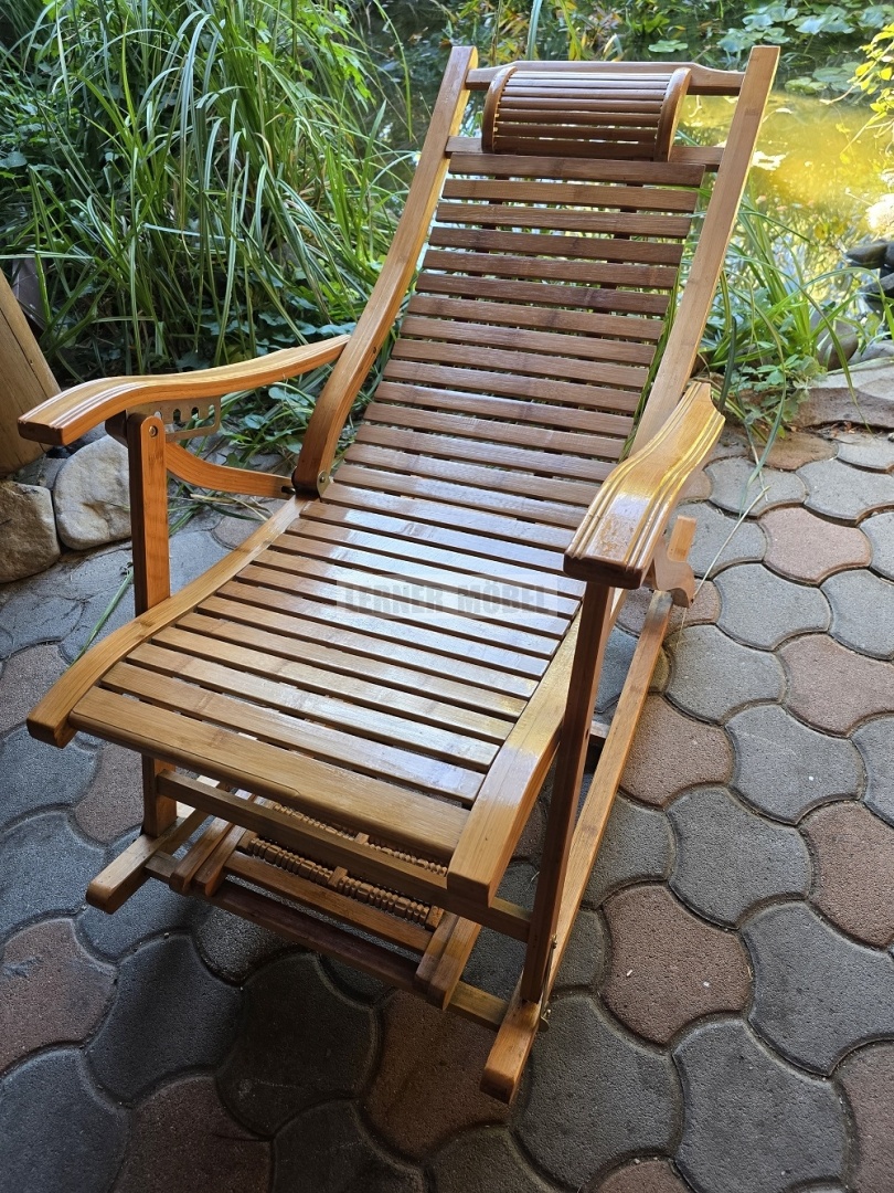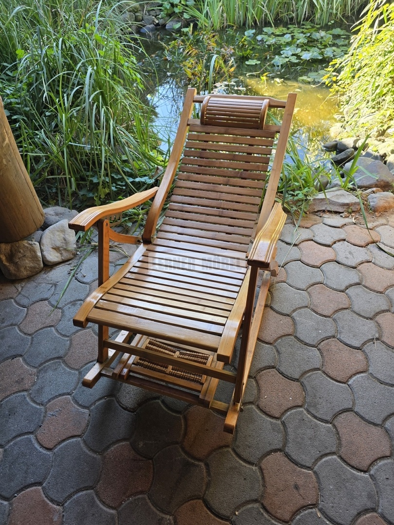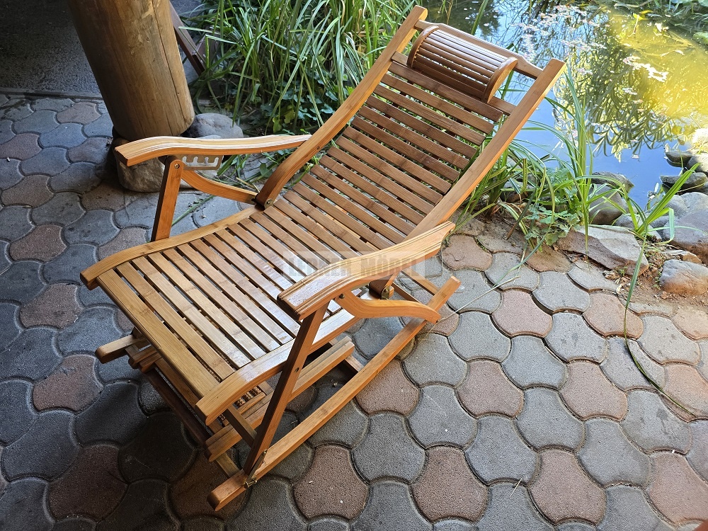 A bambuszból készült hintaszék természetes eleganciát és kényelmet sugároz.